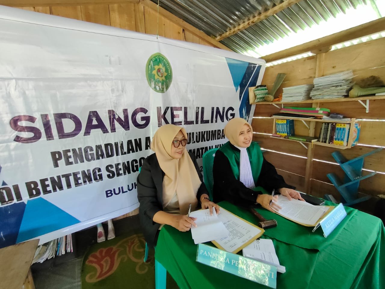 Sekolah Alam Benteng Senggang, yang biasanya riuh oleh celoteh anak-anak dan suara guru relawan mengajar, hari ini berubah wujud menjadi ruang sidang sederhana. Di balik dinding kayu, ruangan yang biasa digunakan untuk proses belajar mengajar kini menjadi saksi hadirnya keadilan. Meja-meja sederhana disusun rapi membentuk ruang peradilan, dan satu per satu warga yang telah terdata sebelumnya mulai mengikuti proses persidangan. Meski fasilitas sangat terbatas, jalannya sidang tetap berlangsung dengan khidmat. Semua proses dilakukan secara prodeo atau tanpa dipungut biaya sedikit pun sebagai komitmen Pengadilan Agama Bulukumba untuk menjangkau masyarakat yang selama ini sulit mengakses layanan hukum.