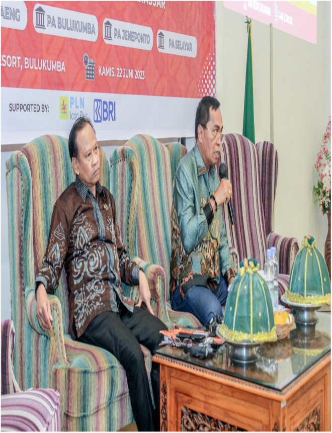 Penegasan tersebut, dikemukakan oleh Ketua PTA Makassar dalam sambutannya ketika membuka secara resmi diskusi hukum Pengadilan Agama se-Wilayah IV Pengadilan Tinggi Agama Makassar, meliputi Pengadilan Agama Bulukumba Kelas IB, Pengadilan Agama Bantaeng Kelas II, Pengadilan Agama Jeneponto Kelas II dan Pengadilan Agama Selayar Kelas II, di Ballroom Some Resort Bira, Kabupaten Bulukumba, Kamis pagi, 22 Juni 2023.