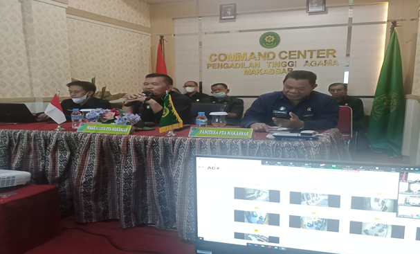 Pada Hari Rabu Tanggal 9 Maret 2022 pukul 13.30., dilaksanakan kegiatan monitoring pelaksanaan Aplikasi CCTV online / ACO, kegiatan ini merupakan kelanjutan dari pelaksanaan monitoring pelaksanaan Aplikasi CCTV online / ACO yang telah dilaksanakan beberapa waktu sebelumnya dan terakhir pada hari Selasa, 8 Maret 2022. Kegiatan ini dipimpin langsung oleh Bapak Wakil Ketua Pengadilan Tinggi Agama Makassar Bapak Dr. H. Mame Sadafal, M.H. dan dihadiri oleh Bapak-Bapak Hakim Tinggi Pengawas Daerah dan Bapak Panitera serta PLH. Sekretaris Pengadilan Tinggi Agama Makassar.