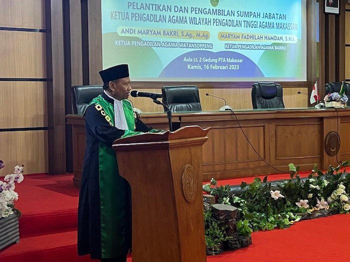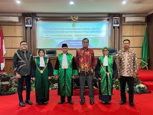 Kamis, 16 Februari 2023 pukul 08.30 WITA bertempat di Aula Lt. 2 Kantor Pengadilan Tinggi Agama Makassar, Ketua Pengadilan Tinggi Agama Makassar Dr. Drs. H. Muhammad Abduh Sulaeman, S.H.,M.H. melantik dan mengambil sumpah jabatan :