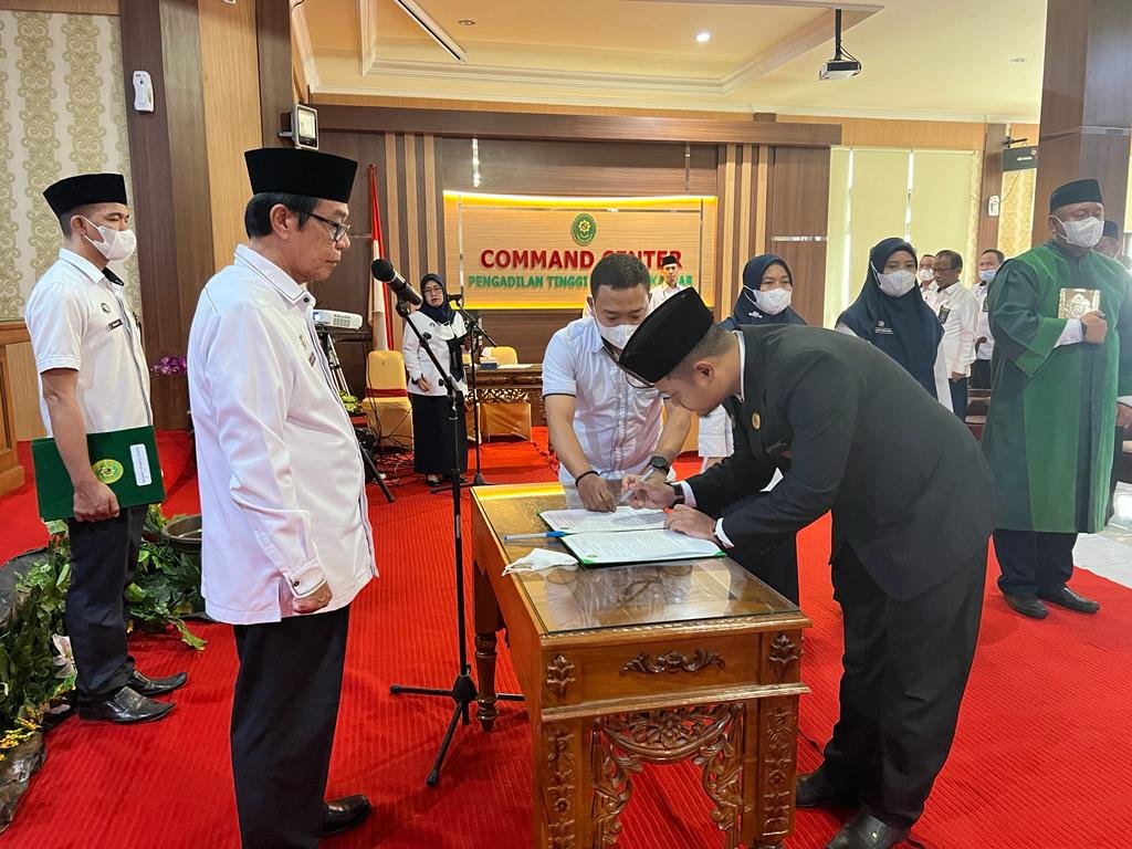Salah seorang Staf PTA Makassar, Dian Firdaus Ahadi. A.Md yang telah dilantik dan diambil sumpahnya pada hari Senin tanggal 01 Agustus 2022 sebagai PNS, kembali lagi dilantik dan diambil sumpahnya sebagai Tenaga Fungsional Arsiparis Terampil PTA Makassar pada hari Senin tanggal 05 September 2022 oleh Ketua PTA Makassar, Dr.Drs. H. Abu Huraerah, S.H.,M.H. di ruang Aula PTA Makassar Lantai I dan dihadiiri oleh Wakil Ketua, Hakim Tinggi, Panitera, Sekretaris, Kepala Bagian, Kasubbag, Tenaga Fungsional dan seluruh staf PTA Makassar.