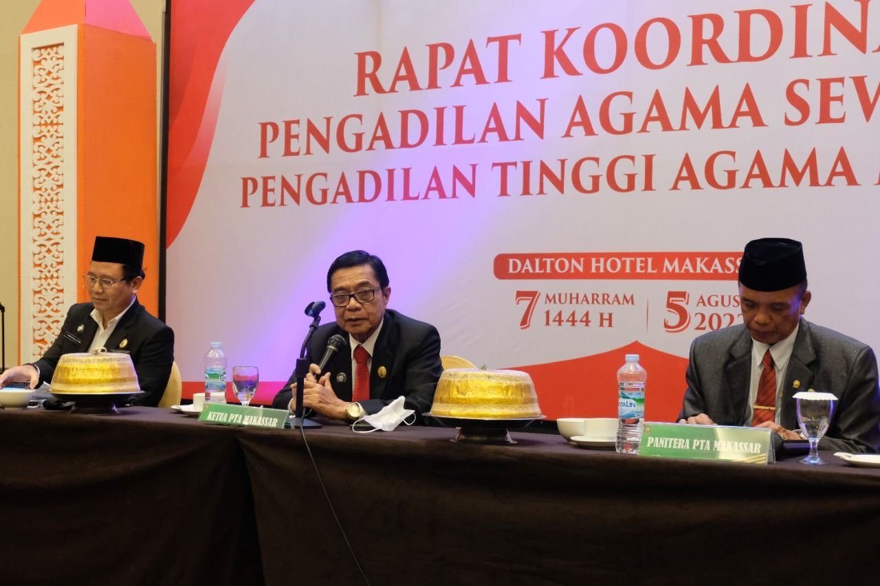 Bertempat di Ruang Balla Ratea 1 Hotel Dalton, Jum’at, tanggal 05 Agustus 2022, tepat jam 14.00 Wita dilaksanakan Rapat Koordinasi Pengadilan Agama Sewilayah Pengadilan Tinggi Agama Makasar Tahun 2022 yang dipimpin langsung oleh Ketua PTA Makassar Dr. Drs. H. Abu Huraerah, S.H., M.H.  dengan di dampingi oleh Sekretaris Abdul Mutalip, S.Ag., S.H., M.H.  dan Panitera yang baru saja di lantik, Drs. Musbir.  Rapat dihadiri Ketua dan Wakil Ketua Pengadilan Agama serta Panitera di lingkungan PTA Makassar Sewilayah Sulawesi Selatan Barat.